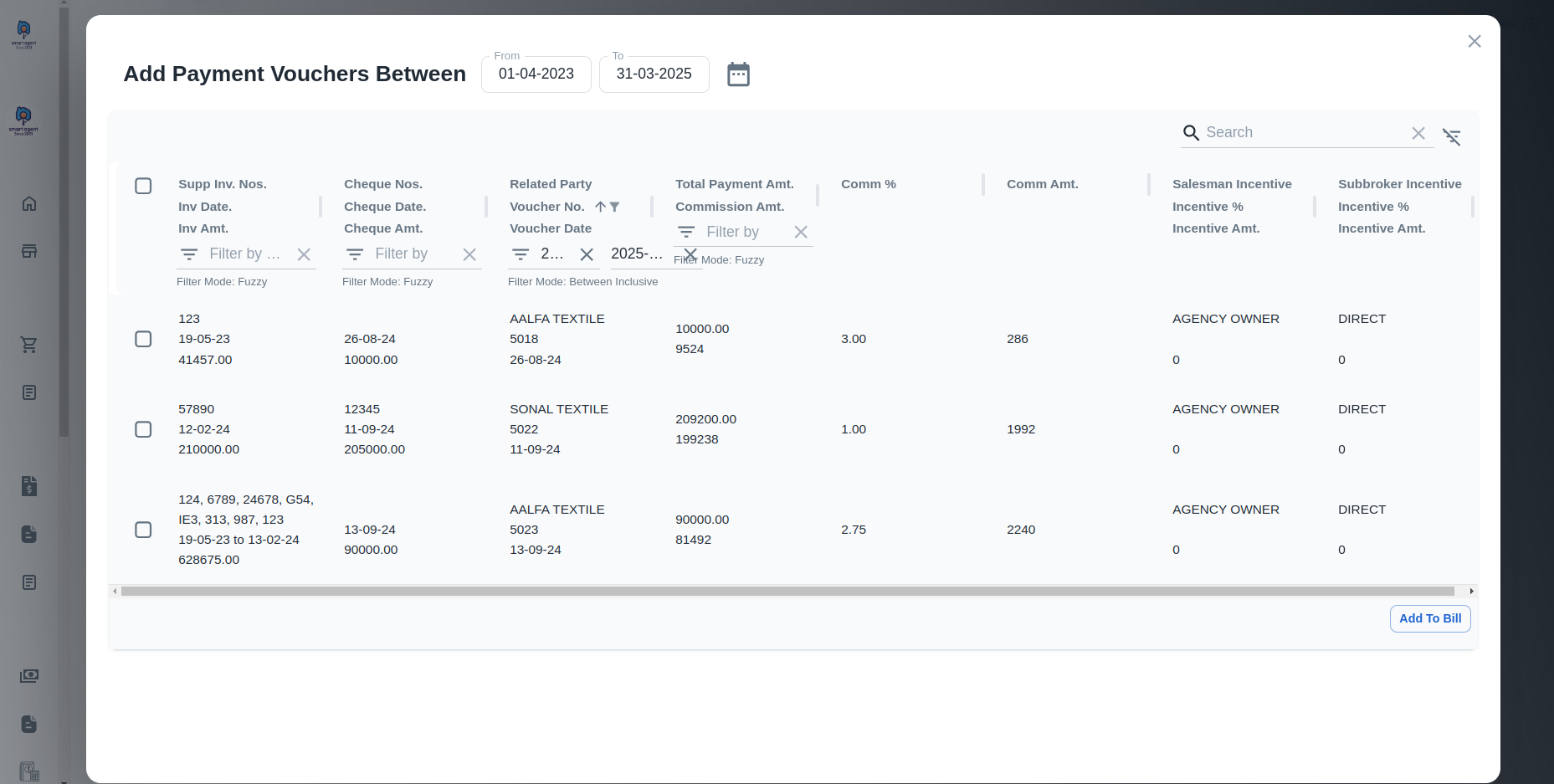 - Payment voucher wise Commission Billing.